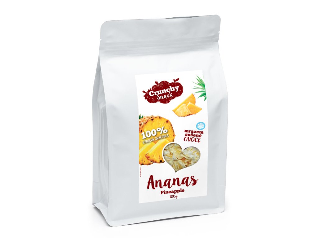 Crunchy snack lyofilizovaný ananas je zdravá a křupavá svačinka plná vitaminů a minerálů bez přidaných barviv a konzervantů.